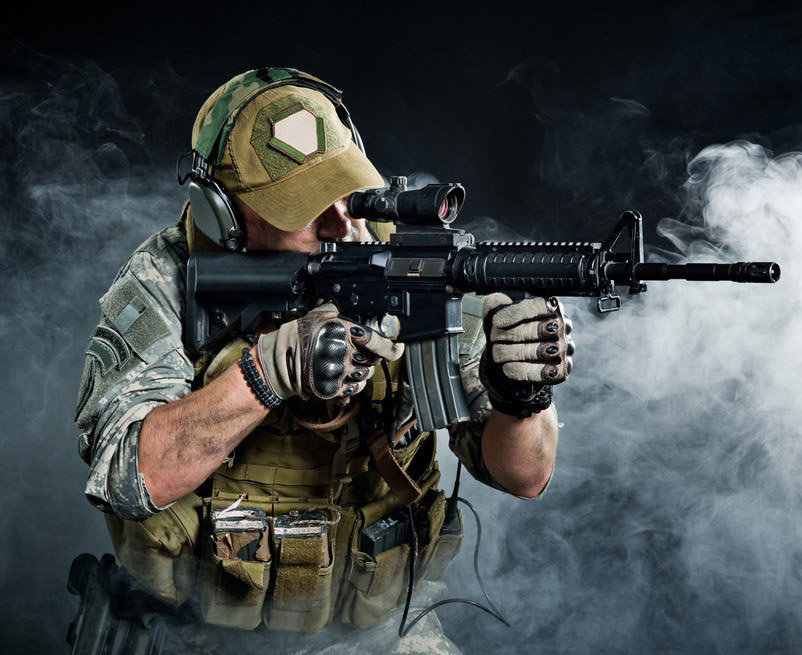 迷彩印花面料是利用色塊使士兵形體融匯于背景色的偽裝性軍服